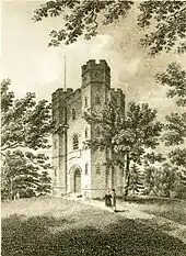 Following Lady James' death in 1798, the building passed through the hands of various landowners, including John Blades, a former Sheriff of London, a Mr Barlow (ship owner) who built nearby Castle Wood House, and Thomas Jackson (a railway and docks contractor of Eltham Park).[4] On 18 August 1845, the tower was visited by diarist William Copeland Astbury, who recorded the tower, layout, ownership and condition.[5] In 1922, the tower was purchased by London County Council and it became a local visitor attraction with a ground-floor tearoom serving refreshments. In 1986, when the GLC was abolished, responsibility for Severndroog passed to Greenwich Council.[6]