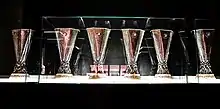 Sevilla's six Europa League trophies on display in the club stadium