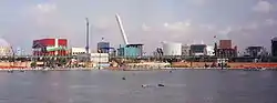 Panorama of the pavilions on the Lago de España at Expo'92 Seville