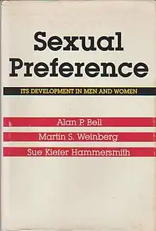 Sexual Preference: Its Development in Men and Women (1981) is a book about the development of sexual orientation by the psychologist Alan P. Bell and the sociologists Martin S. Weinberg and Sue Kiefer Hammersmith, in which the authors reevaluate what were at the time of its publication widely held ideas about the origins of heterosexuality and homosexuality, sometimes rejecting entirely the factors proposed as causes, and in other cases concluding that their importance had been exaggerated. Produced with the help of the American National Institute of Mental Health, the study was a publication of the Institute for Sex Research. Together with its Statistical Appendix, Sexual Preference was the conclusion of a series of books including Homosexuality: An Annotated Bibliography (1972) and Homosexualities: A Study of Diversity Among Men and Women (1978), both co-authored by Bell and Weinberg.
