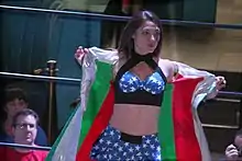In August, Sexy Star was announced as one of five AAA wrestlers to star in the new El Rey program Lucha Underground, which premiered on October 29;[44] her first match was against Son of Havoc. When Blue Demon Jr. was attacked post-match by Chavo Guerrero Jr. with a steel chair, Sexy Star came in to try and persuade Chavo to desist, but was struck in the head by Chavo with the chair. Her storyline for Season One was her determination to get revenge on Chavo, and on the December 3 program she teamed with Fénix against Chavo and Pentagón Jr. in a tag team match that ended with Sexy Star getting the pin on Pentagón Jr.[45] On April 1, 2015, Star participated in a tournament to crown the first LU Trios Champions. Sexy Star, Pentagón Jr. and Super Fly were defeated by Big Ryck, The Mack and Killshot. After the match, Pentagón tried to break Super Fly's arm, but Star saved him. On February 7, 2015, Sexy Star won her first mask, when she defeated Super Fly in a Mask vs. Mask Lucha de Apuestas. After the match, Pentagón Jr. attacked Star and broke Super Fly's arm.[46] On April 22, 2015, Star defeated Pentagón Jr. On June 3, 2015, Star was defeated by Pentagon Jr. in a Submission match after Super Fly attacked her. On Ultima Lucha, broadcast on August 5, 2015, Sexy Star was one of seven "Aztec Medallion" holders who participated in a seven-way Battle Royal Match for the inaugural Lucha Underground Gift of the Gods Championship, but was unsuccessful in winning the match. At the end of Ultima Lucha she was shown to have been kidnapped by Marty "The Moth" Martinez as part of a storyline leading into Season Two. On January 31, 2016, at the second season Ultima Lucha, Sexy Star became the first female Gift of the Gods Champion.[47] She lost the title to Johnny Mundo on March 19, 2016.[48] On April 9, Sexy Star won the third Aztec Warfare match to become the first female Lucha Underground Champion.[49] She also lost that title to Mundo the following day.[50]