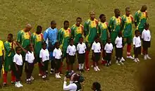 Keita helped Mali's under-20s finish third at the 1999 FIFA World Youth Championship in Nigeria, scoring the only goal[31] in the last match against Uruguay, and being named the tournament's best player. He made his senior debut for Mali on 9 April 2000, in a 2002 FIFA World Cup qualifier against Libya.[32] He wore the no.12 shirt as he represented the country in six Africa Cup of Nations tournaments: in the 2010 edition in Angola he scored twice, both goals coming in the 4–4 group stage draw against the hosts, who were leading 4–0 with 11 minutes to go;[33] Les Aigles, however, could not make it past the group stage. From 2007 to 2008, he scored an impressive 8 goals in 20 international matches from his midfield position.