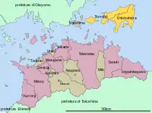 Shōzu (小豆郡, Shōzu-gun) is a district in Kagawa Prefecture, Japan that covers the towns of Shōdoshima and Tonoshō.[1] The district includes the islands of Shōdoshima, Teshima, and nearby small islands in the Seto Inland Sea.