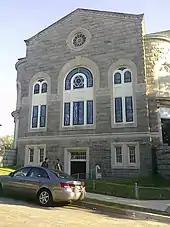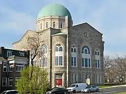Shaarei Tfiloh Synagogue is a historic synagogue located on Druid Hill Park at Baltimore, Maryland, United States. The synagogue is significant due to its association with the immigration of Russian and Eastern European Jews to Baltimore. It is a rock-faced stone structure with large arched stained glass windows and a pedimented roofline surmounted by a central copper-clad dome. Its name means Gates of Prayer in Hebrew.