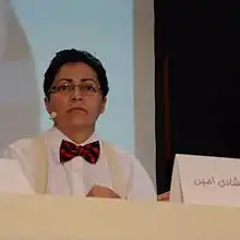 Amin won the 2009 Hammed Shahidian Critical Feminist Paper Award jointly with Golrokh Jahangiri.[13] The award was created in memory of Iranian feminist scholar and professor Hammed Shahidian of the University of Toronto and is used to award funds for critical examinations in studies of Middle Eastern women.[14] Amin used her award to research political prisoners in Iran in the 1980s and study rape and sexual abuse, which she presented at the seminar The Political Prisoners, Beyond the Wall, the Word held in Toronto in 2011.[15] In 2012, Amin was part of a panel with Amnesty International, speaking at an event before the International Day Against Homophobia, Biphobia and Transphobia (IDAHO).[16] In 2013, she participated in Turkey's Gay Pride as it was the closest location to Iran where a Pride event was hosted.[17]
