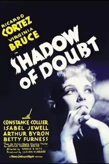 Shadow of Doubt is a 1935 American mystery film directed by George B. Seitz and written by Wells Root. The film stars Ricardo Cortez as Sim Sturdevant, whose fiance Trenna Plaice (Virginia Bruce) is suspected in the murder of movie producer Len Hayworth (Bradley Page). Sturdevant's aunt (Constance Collier) investigates and identifies the real killer. Based on a story by novelist Arthur Somers Roche, the film was released on February 15, 1935, by Metro-Goldwyn-Mayer.