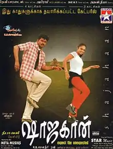 Shahjahan is a 2001 Indian Tamil-language romantic film written and directed by Ravi and produced by R. B. Choudary. The film stars Vijay and Richa Pallod while Krishna and Vivek portray supporting roles. The film, which had music was composed by Mani Sharma, was released on 14 November 2001. The story is about the love life of a love doctor and how his love life ends in a tragedy unknowingly. The movie was a commercial success.[1][2]