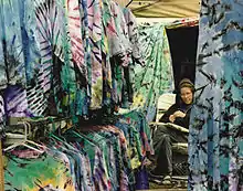 Shakedown Street is the area of a jam band parking lot where the vending takes place.[1][2][3] It is named after the Grateful Dead song of the same name,[1][4][5] and began in the early 1980s in the parking lots at Grateful Dead concerts.[1] Items sold have included food, beverages and alcoholic beverages, clothing (such as T-shirts)[6] and jewelry,[1][4] among others. Ticket scalping may also occur.[1]
