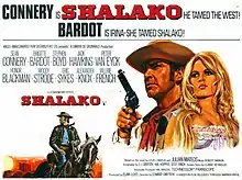 Shalako is a 1968 British-American-German Western film directed by Edward Dmytryk and starring Sean Connery and Brigitte Bardot. It was shot at Shepperton Studios near London with sets designed by the art director Herbert Smith. Location shooting took place in Almería in southern Spain, particularly in the Tabernas Desert which was frequently used in European westerns during the decade.