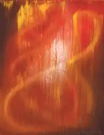 Guffogg began creating his pattern paintings in the 90's. These works are created through 70 to 80 layers of translucent oil paint on canvas in order for the pieces to display illumination from within. What is different about the pattern paintings is that Guffogg paints a pattern over his usual pattern found in other works. The patterns are painted lightly and look as if a painted lace was draped over Guffogg's work.[17] He creates the patterns seen in these works by starting at the left-hand corner and working his way across the canvas. This method of applying the pattern to the painting shows Guffogg's attention to conscious and subconscious perceptions and his fascination with the way the human psyche operates. As a result, the viewer can see dancing light within the work veiled by a lace-like pattern.[18]