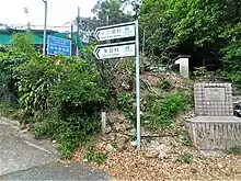 Signs at Sha Tin Pass indicating Shap Yi Wat Village and Mau Tat Village.