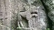 In Sanskrit literature, Sharabha is initially described as an aggressive beast that roared and scared other animals in the hills and forest areas. Similies compare warriors to Sharabha. In the Hindu epic Mahabharata, this form of Sharabha was defined as a lion-slaying monster with eight legs, eyes on the top; living in the forest and which ate raw flesh. It is also mentioned as residing on Mount Krauncha but not as a monster but as an ordinary beast along with lions and tigers on mount Gandhamadana. The epic also includes Sharabha in the list of edible animals - the mrigajatis- the animal group of antelope, deer, hare, bear, ruru deer, sambar, gayal, boar, and buffalo - which was offered as part of food at dinner to guests. Sharabha appears primarily as the incarnation of the god Shiva, as a name of a monkey-king in the epic Ramayana, also as a proper name of heroes and serpent Nāgas and one of the names of god Vishnu as well as Buddha.[4][5] In defining the ecological theme in Hindu medicine related to jungle and the aroma of meats, Sharabha has also been listed among the deer natives of Kashmir, Nepal, and Sikkim. However, the features explained are of an eight legged animal of the size of a camel with huge horns and conjectured as a large Himalayan goat.[6]