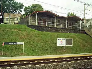 Sharon Hill station is a SEPTA Regional Rail station in Sharon Hill, Pennsylvania. It serves the Wilmington/Newark Line, with southbound service to Wilmington and Newark, Delaware and northbound service to Philadelphia. This station is within walking distance of the Sharon Hill terminus of the Route 102 Trolley, although no direct connection exists between the two stations. It is not a staffed station and has no ticket machines. The historic station building, which was originally built in 1872,[2] is abandoned and is to be restored. It is located at Sharon & Woodland Avenues. Amtrak trains pass through but do not stop.