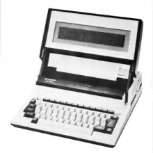 The PC-5000 was largely IBM PC-compatible, with the same 4.77-MHz Intel 8088 processor as the IBM PC, and ran MS-DOS 2.0 (in ROM). It had 128 kilobytes of internal memory (it was one of the few computers to use bubble memory), which could be expanded by the use of plug-in cartridges. The cartridge slots also accepted ROM cartridges containing software, such as the Extended BASIC programming language and the EasyPac software suite, which contained the EasyWrite II word processor, EasyReport reports program, and EasyComm terminal software for use with the internal modem. It featured a 640×80-pixel (80-character by 8-line) LCD display, a full-travel keyboard, and an external dual 5.25-inch floppy disk drive. A notable feature of the computer was its built-in thermal printer, which could also be purchased separately and attached to the machine. It is perhaps due to this attachment that the case design of the PC-5000 owes much to that of electronic typewriters of its time.