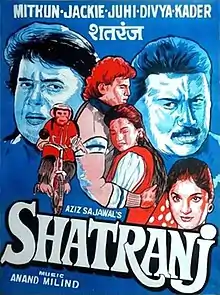 Shatranj (transl.Chess) is a 1993 Indian Hindi-language drama film directed by Aziz Sejawal,[1] starring Mithun Chakraborty, Jackie Shroff, Kader Khan, Juhi Chawla and Divya Bharti.[2] The movie marks Bharti's last film appearance.[3] Khan's son Sarfaraz Khan appeared as the younger version of his character.