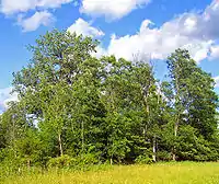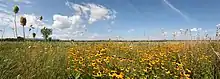 In addition several hawk and falcon species (not grassland-dependent) have been seen at the site,[8] and black-billed cuckoo and wood thrush have been nesting in the woodland portions.[9] Non-bird species that have settled into the habitat include several turtle species, small-mouthed bass and sunfish in the one small pond on the site[10] and white-tailed deer in the woodlands.