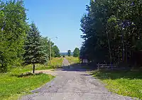 The central area of the property, the former airport, is bounded on all sides by woodland and shrubland (except for a small corridor around the main public access road) which makes up 165 acres (66 ha) of the total. The 400 acres (160 ha) that account for the core grassland also boast the former airport's 3,500-foot–long (1,067 m) runways and equivalent taxiways, taking up about 30 acres (12 ha) along the southern and western bounds of the grasslands. From this open space, it is possible to see the Shawangunk Ridge to the west.