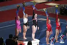 She won the silver medal in floor exercise, with teammate Liukin taking bronze. She won a gold medal on the balance beam apparatus becoming the second American to win gold on balance beam after Shannon Miller who won in 1996.[46] Like the individual all-around, she and Liukin took the top two medals in this event.[47][48][49] She qualified as the second reserve to the uneven bars final, but did not compete.
