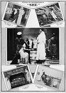 She is a 1911 American fantasy silent film and is the first film to attempt to portray the story in the 1887 novel of the same name by H. Rider Haggard. Made by the Thanhouser Company, the film was directed by George Nichols and featured his wife Viola Alberti as Amenartes. It starred Marguerite Snow in the title role[1] and James Cruze in the joint role of Kallikrates and Leo Vincey[2] and was based on a scenario by Theodore Marston.[3][4]