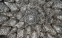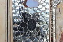 Sheesh Mahal, in Urdu language, literally means 'Crystal Palace'. However, with its pietra dura decorations[2] and intricate mirror-work inlaid into the white marble walls and ceilings creating gleaming effect,[3] the lavish room has come to be known as 'Palace of Mirrors', and sometimes the 'Hall of Mirrors'. Similar halls are also found in the contemporary palace of the Agra Fort, and show influence on the later additions to Amber Fort.