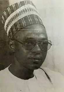Shehu Shagari married three wives: Amina, Aisha, and Hadiza Shagari.[7] He had several children, including Muhammad Bala Shagari and Aminu Shehu Shagari. On 24 August 2001, his wife, Aisha Shagari, died in a London hospital following a brief illness. She was 49.[53] Hadiza Shagari, at the age of 80, died from COVID-19 complications in Abuja on 12 August 2021.[54][55][56]