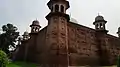 The main tomb belongs to Sufi Abd-ur-Rahim Abdul-Karim Abd-ur-Razak, popularly known by the name of Sheikh Chilli. He was Qadiriyya Sufi master of Mughal Prince Dara Shikoh. The architectural plan of the tomb shows considerable Persian influence. There is another tomb in the complex, believed to be of Sheikh Chilli's wife.[4] This beautiful tomb and attached Madrasa are associated with the Sufi Saint Abd-ur-Rahim. There is a mosque called Pather Masjid (Stone Mosque) that was built in red sandstone. On the north side are the Mughal Gardens. The ceiling of the mosque, resting on pillars is decorated with floral designs carved in low relief. The pillars are also profusely decorated with floral designs, while the bases over the mouldings show chaitya-window motifs. The Qibla in the centre of the western wall is flanked on either side by two arched niches inscribed with verses from the Quran. The masonry terrace forming the front court was added at a later date. The masjid is assignable to the seventeenth Century A.D. Adjoining the southern flank of the complex (i.e. north of the tomb of Sheikh Chilli) is a large sized building which on account of both stratigraphic evidence and style of construction appears to be a garden complex following the pattern of a typical Mughal Garden and is divided into four equal, symmetrical parts (the charbagh pattern) with a square hauz in the centre. Water to the hauz (tank) was supplied by terracotta pipes from the east, concealed within the wall.