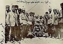 Two weeks before the Sheikh Said incident, in late January 1925, the TCF Erzurum deputy Ziyaeddin Efendi, with heavy criticism of the actions of the ruling CHF in the chair of the Grand National Assembly, said that ‘innovation’ had led to the encouragement of “isret” (getting drunk), an increase in prostitution, Muslim women losing their decency and, most important of all, religious customs being dishonored and disregarded by the new regime.[17] The Azadî forces under the lead of Halid Beg Cibran[6] were dominated by the former members of the late Ottoman era Hamidiye regiments, a Kurdish tribal militia established during the reign of Sultan Abdul Hamid II to deal with the Armenians, and sometimes even to keep the Qizilbash under control. According to various historians, the main reason the revolt took place was that various elements of the Turkish society were unhappy with the Turkish Parliament's abolition of the Ottoman Caliphate on 3 March 1924. According to British intelligence reports, the Azadî officers had 11 grievances.[18] Apart from Kurdish cultural demands and complaints of Turkish maltreatment, this list also detailed fears of imminent mass deportations of Kurds. They also registered annoyance that the name Kurdistan did not appear on maps, at restrictions on the Kurdish language and on Kurdish education and objections to alleged Turkish economic exploitation of Kurdish areas, at the expense of Kurds.[18] The revolt was proceeded by the smaller and less successful Beytüssebap revolt in September 1924, led by Cibran[19] and Ihsan Nuri on the orders by the prominent Azadî member Ziya Yusuf Bey.[20] The revolt was subdued, and its leaders Cibran and Ziya Yusuf Bey were captured and courtmartialed in Bitlis.[21]