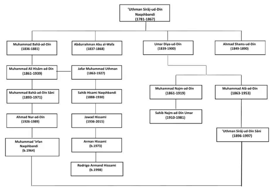 The founder of the family is Uthman Sirâj-ud-Dîn Naqshbandi.