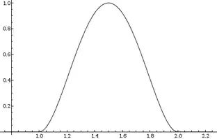 Consider the volume, depicted below, whose cross section on the interval [1, 2] is defined by: