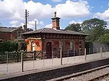 It is the current southern terminus of the Battlefield Line Railway, which runs to here from Shackerstone. The station is located at the foot of Ambion Hill and is actually the reconstructed Humberstone Road Station from Leicester. The original station closed in 1965 and was dismantled and relocated (except for a small lamp room that now serves as the Station Pottery).