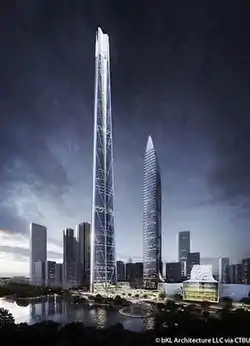 The H700 Shenzhen Tower is a vision megatall skyscraper in Shenzhen, Guangdong, China. It is planned to be 608 metres (1,995 ft) tall with 130 floors. The tower is designed by Chicago-based company bKL Architecture.[2][3]