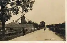 At the east of the hamlet on Drove Road are the Grade II listed late 18th-century remains of the tower mill.[9] The mill was working with four sails until the 1920s, but by the middle of the 1930s it had lost its roof and become a ruin.[10]