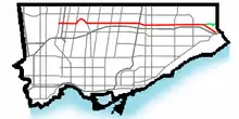 Sheppard Avenue is an east–west principal arterial road in Toronto, Ontario, Canada. The street has two distinct branches near its eastern end, with the original route being a collector road leading to Pickering via a turnoff, and the main route following a later-built roadway which runs south to Kingston Road. To avoid name duplication, the Toronto portion of the northern branch was renamed Twyn Rivers Drive. The section of the street entirely in Toronto is (34.2 km) in length,[1] while the Pickering section and Twyn Rivers Dr. is (5.4 km) long.[2]