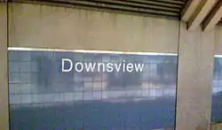 The former station name, "Downsview", in unique mixed-case lettering on the platform