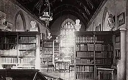 The school continues to occupy the site of the former monastery; the school chapel (12th century, modified in the 15th, 19th, and 20th centuries), library (13th century, 15th century roof and windows), and the Abbot's House (c. 1480), occupied by the headmaster and the senior staff, are all former monastic buildings. The outlines of the monastic cloister, and curious first floor Abbot's Chapel, are visible on the walls beyond the Abbot's House.[9]