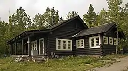 The Sherburne Ranger Station in Glacier National Park is an example of the National Park Service Rustic style. Located in the Swiftcurrent portion of the park, it was built in 1926. It is part of a small historic district that includes a mess hall and subsidiary structures, formerly known as the Sherburne Road Camp, established in 1931.[2][3] The ranger station closely resembles the ranger stations at Belly River and Lake McDonald. A checking station at the road remains substantially intact.[4]