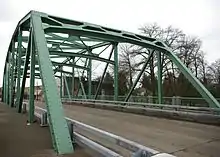 The steel bridge carries Bridge Street across the South Yamhill River where the bridge's northern terminus is at the intersection with Oregon Route 18 Business (Main Street). Bridge Street then continues south to Oregon Route 18 where it ends just north of the Federal Correctional Institution, Sheridan. It is the only passenger bridge inside of town (there is a railroad bridge further upriver), and is maintained by Yamhill County.[5] As of 2001 the bridge carries an average of 2,163 vehicles per-day on the two-lane structure in downtown Sheridan.[6] In addition to one lane of traffic in each direction, the bridge has sidewalks on both sides.