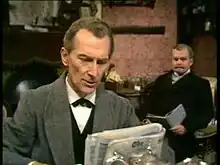 In the late summer and early autumn of 1966, the Wilmer series was granted a repeat run and the success of the run convinced the BBC to take up an option on a second run of episodes.[17] BBC television drama chief Andrew Osborn reached out to Wilmer's agent about potential availability for a second series.[17] Wilmer declined the invitation after discovering the plan to reduce the number of rehearsal days.[15][18] Wilmer later stated that the series was "fraught with difficulty",[14] riddled with incompetence[15] and the scripts often came in late.[15] He claimed that the scriptwriters ranged from "the brilliant to the absolutely deplorable".[14] Some of the scripts were so lacking in quality that Wilmer himself rewrote them,[15] sometimes staying up until two o'clock in the morning rewriting.[14] Years later, Wilmer would briefly return to the role (albeit in a supporting role) in Gene Wilder's The Adventure of Sherlock Holmes' Smarter Brother, with Thorley Walters as Dr. Watson.