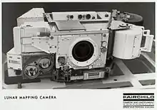 Fairchild Corporation developed the Fairchild Lunar Mapping Camera (also known as the Metric Camera) for NASA.[14] The camera was carried on Apollo 15, 16, and 17 and took photos from lunar orbit throughout the missions. Over 7,000 frames were captured by the Lunar Mapping Cameras, covering approximately 20% of the lunar surface.[14] These frames were used to produce topographic photo maps of the moon.[15]