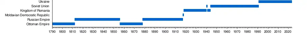 - Since 30 December 1962 — Izmail Raion, Odesa Oblast, Ukrainian SSR, USSR[7]