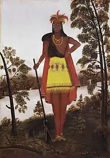 Shikellamy (1680 - December 6, 1748), also spelled Shickellamy and also known as Swatana, was an Oneida chief and overseer for the Iroquois confederacy. In his position as chief and overseer, Shikellamy served as a supervisor for the Six Nations, overseeing the Shawnee and Lenape tribes in central Pennsylvania along the Susquehanna River and protecting the southern border of the Iroquois Confederacy. While his birth date is not known, his first recorded historical appearance was in Philadelphia in 1728.[1] In 1728 he was living in a Shawnee village in Pennsylvania near modern Milton, and moved in 1742 to the village of Shamokin, modern day Sunbury, at the confluence of the West and North Branches of the Susquehanna. Shikellamy was an important figure in the early history of the Province of Pennsylvania and served as a go-between for the colonial government in Philadelphia and the Iroquois chiefs in Onondaga.[2] He welcomed Conrad Weiser to Shamokin and served as Weiser's guide on his journeys into the frontier of Pennsylvania and New York.