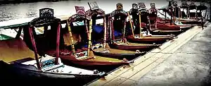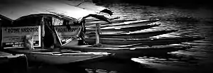 The shikara is a type of wooden boat found on Dal Lake and other water bodies of Srinagar in Jammu and Kashmir, India. Shikaras are of various sizes and are used for multiple purposes, including transportation. A usual shikara seats six people, with the driver paddling at the rear. Like the Venetian gondolas, they are a cultural symbol of Kashmir. Some shikaras are still used for fishing, harvesting aquatic vegetation (usually for fodder), and transport, while most are covered with tarpaulins and are used by tourists. Some are used as floating homes.[1][2]