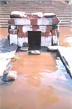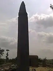 During Treta Yuga, Lord Rama killed Maricha, who was in the disguise of a deer at Mrugavadhe near Thirthahalli.[4] The Shimoga region formed a part of the Mauryan empire during the 3rd century.[6] The district came into the control of Satavahanas. The Satakarni inscription has been found in the Shikaripur taluk.[7] After the fall of the Shatavahana empire around 200 CE, the area came under the control of the Kadambas of Banavasi around 345 CE.[8] The Kadambas were the earliest kingdom to give administrative status to the Kannada language. Later the Kadambas became feudatories of the Badami Chalukyas around 540 CE.[9][10]