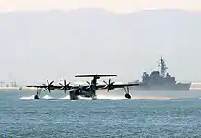 The JMSDF intends to purchase up to 14 US-2s for its search and rescue needs. The type is currently operated by the 31st Fleet Air Wing (71st Air Force, 71st Flight Squadron) of the JMSDF from both Iwakuni Air Base and Atsugi Air Base.[7][8] The introduction of the US-2 has enabled the withdrawal of the US-1A, the last of which performed its final flight during December 2017.[9]