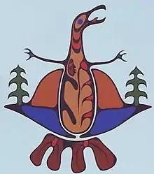The Shingwauk Residential Schools Centre logo evolved out of the Shingwauk Project logo. The image of the crane was selected for the original logo because of Chief Shingwauk's connection the crane. He was a member of the crane clan and his dodem was a crane. The Shingwauk Project logo was modeled after the 'Rising Crane' painting commissioned by the Project. In 2011 Shingwauk Residential Schools Centre staff member Michelle McMillan designed a modern take on the classic crane logo. The logo created by McMillan is still currently in use by the Centre.[12]