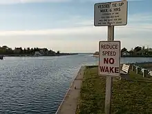 The Shinnecock Canal (also known as the Shinnecock and Peconic Canal) is a canal that cuts across the South Fork at Hampton Bays, New York. At 4,700 feet (1,400 m) long, it connects Great Peconic Bay and the north fork of Long Island with Shinnecock Bay and the Atlantic Ocean. The canal opened to traffic in 1892.[1]