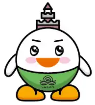 Shinshinotsu's mascot is Okome-chan (おこめちゃん) who is a snowball. It wears a hat that resembles the observatory on Shinotsu Park. Its lips are pink as a result of the side effects of drinking doburoku sake. It cannot drink this sake without rice and side dishes. When people look at it, it reminds them of a rice bowl. Its charm point is its eyes and people can move its eyebrows. Its birthday is August 8. Its goal is to have a depiction of itself on the village's welcome sign.[5]