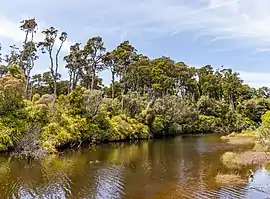 Ship Creek (Māori: Tauparikākā) is a small river that flows into an area of coastal swamp forest on the West Coast of New Zealand's South Island.[1] Ship Creek is approximately 11 km (6.8 mi) long and flows northwest from catchment areas on the slopes of Bald Hill, reaching the Tasman Sea around 20 km (12 mi) north-east of Haast.[2] Near the mouth of Ship Creek, there are short walks around dune lakes and ancient kahikatea swamp forest.[3]
