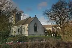 Shipton had a parish church by the latter part of the 12th century, which seems to have been enlarged in the 13th century and received new windows in the 14th century.[3] It was demolished in 1831 and replaced by a new Georgian Gothic Revival Church of England parish church designed by the artist William Turner who lived at the manor house.[4] Some original materials from the original church were re-used. Crossley and Elrington state that this includes the north porch,[3] which Sherwood and Pevsner had earlier dismissed as "free and flimsy Georgian Gothick".[4] Holy Cross was restored in 1869 under the direction of the Gothic Revival architect Charles Buckeridge.[3][5]