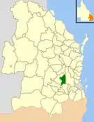 The Shire of Crows Nest was a local government area in the Darling Downs region of Queensland, Australia, immediately northeast of the regional city of Toowoomba. The shire, administered from the town of Crows Nest, covered an area of 1,629.9 square kilometres (629.3 sq mi), and existed as a local government entity from 1913 until 2008, when it amalgamated with several other councils in the Toowoomba area to form the Toowoomba Region. Its growth in later years has been fuelled by the expansion of Toowoomba, particularly the suburbs of Highfields and Blue Mountain Heights which, with a combined population of 7,333 in 2006, were home to over half the shire's population.